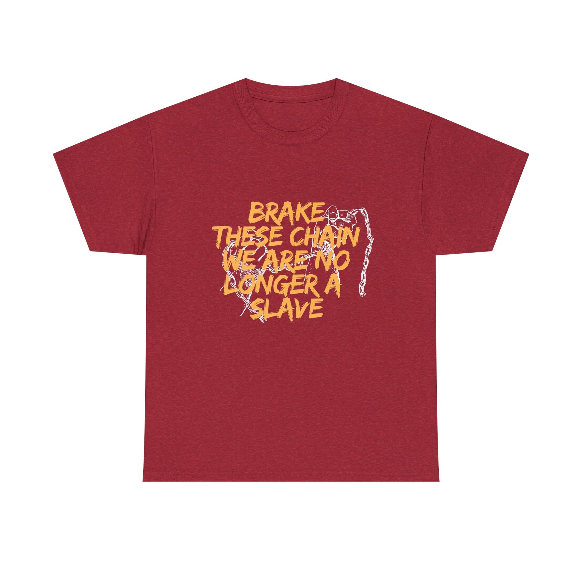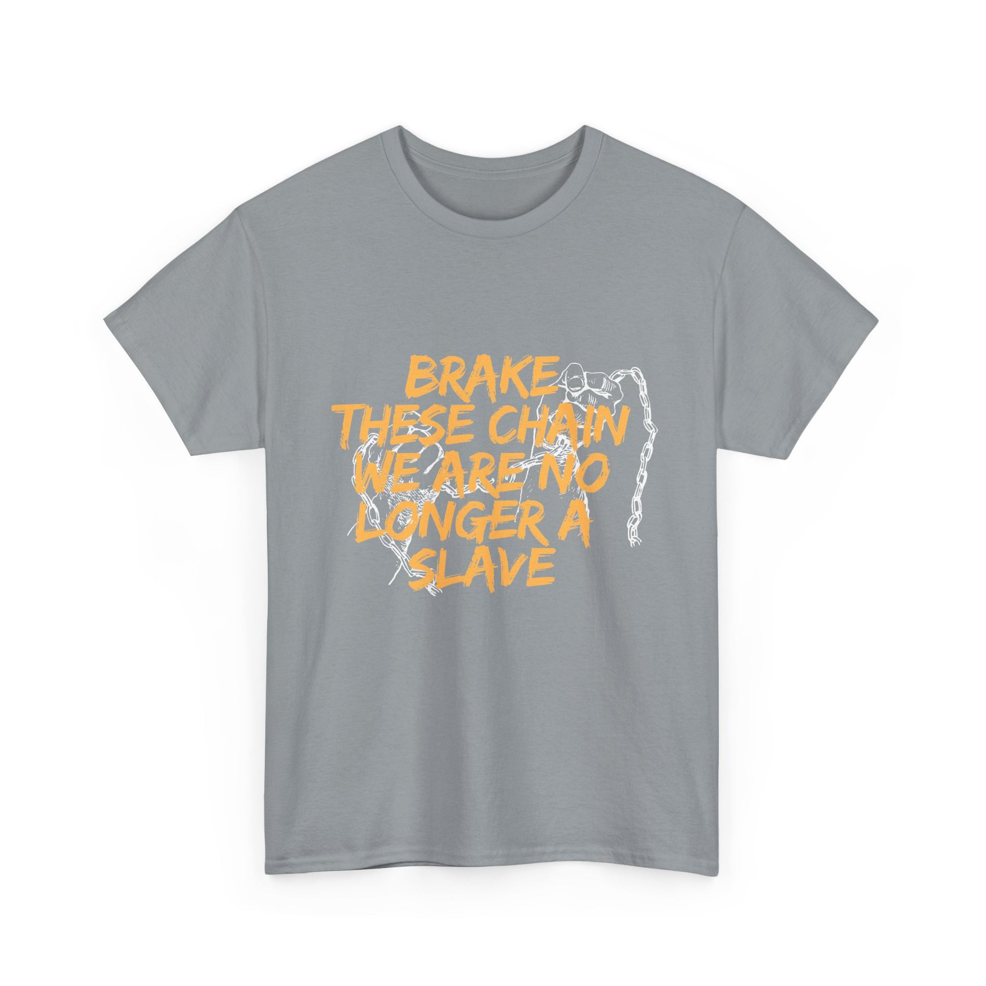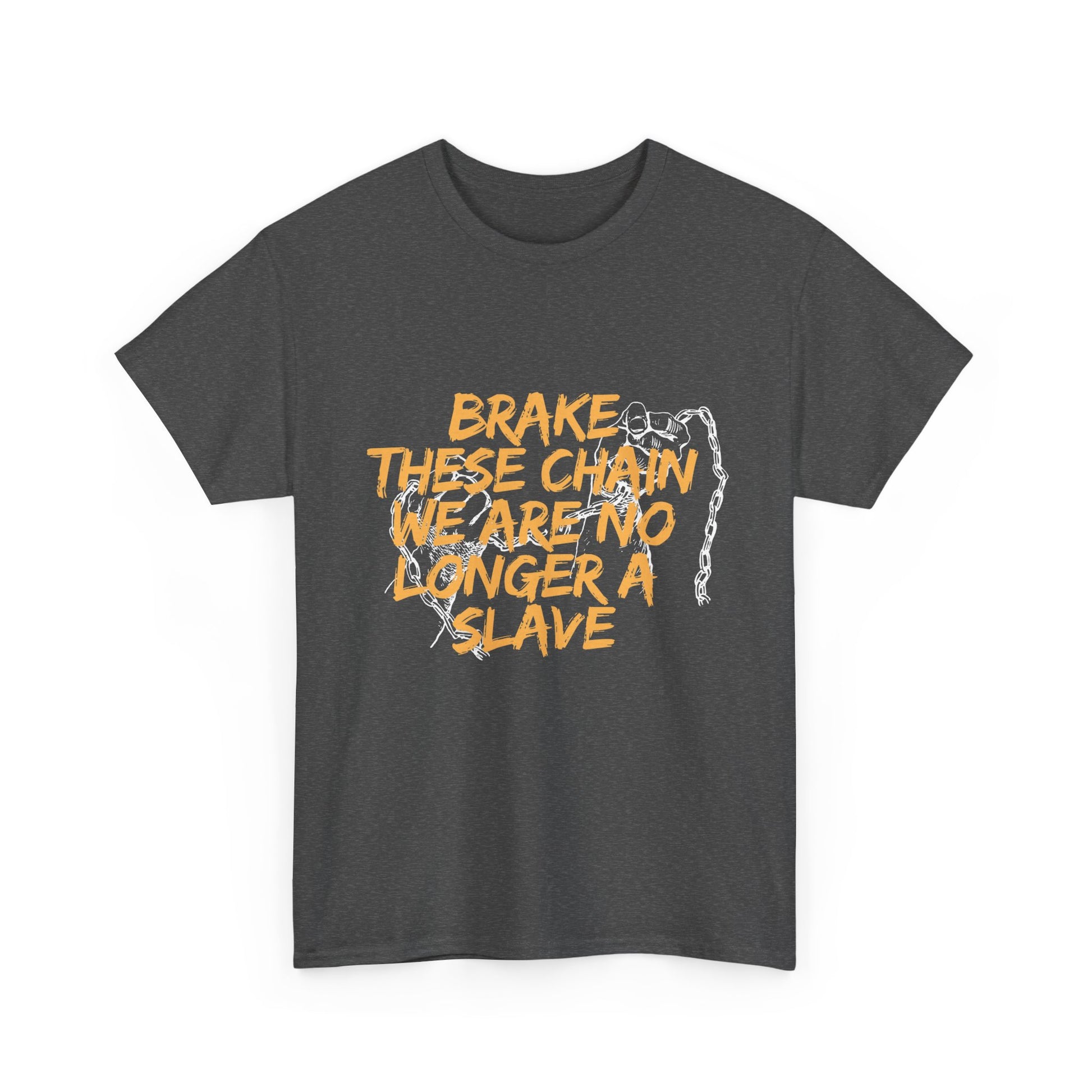 Empowering T-Shirt with the design 'Break These Chains', made from medium-weight, sustainable cotton for year-round comfort. The classic fit and crew neckline make it versatile for any occasion, casual or semi-formal. Suitable for adults looking for a statement piece.