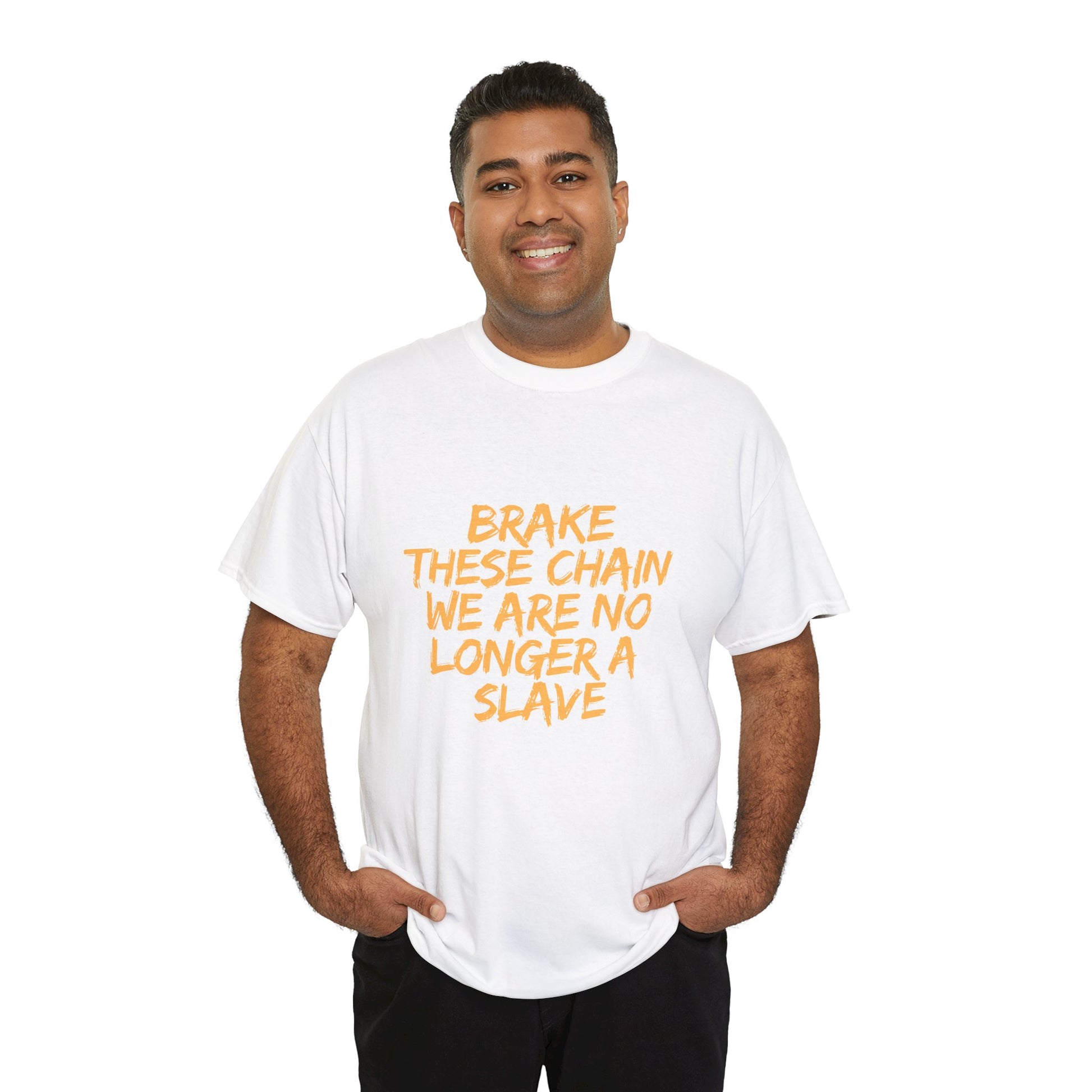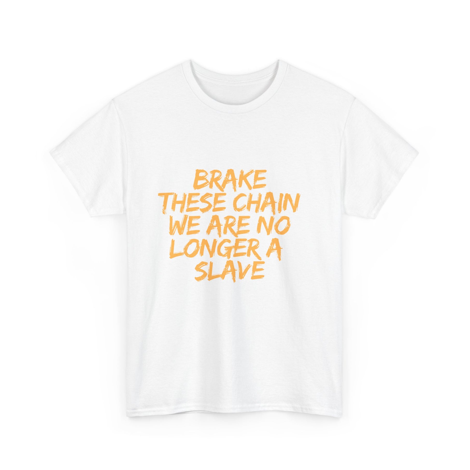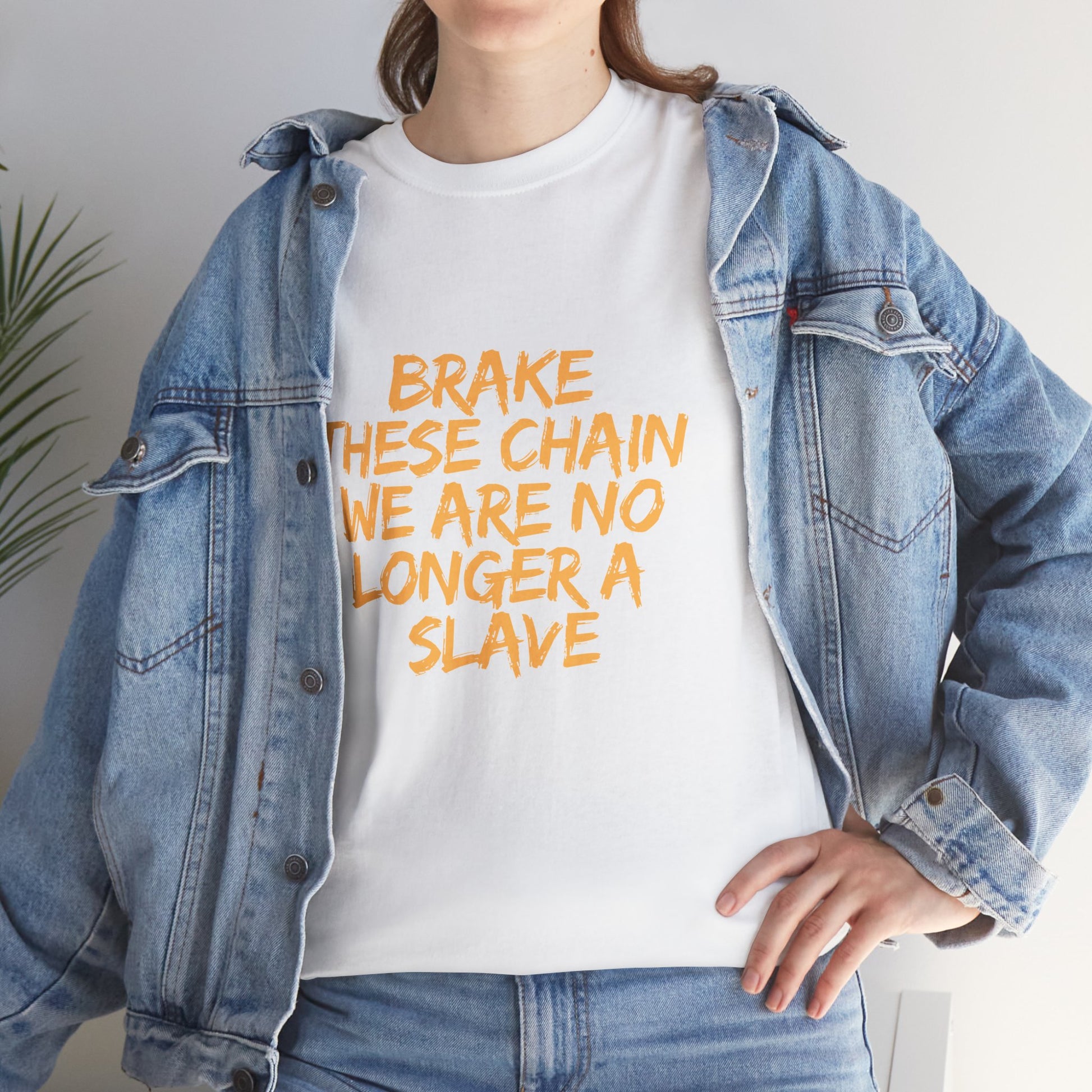Empowering T-Shirt with the design 'Break These Chains', made from medium-weight, sustainable cotton for year-round comfort. The classic fit and crew neckline make it versatile for any occasion, casual or semi-formal. Suitable for adults looking for a statement piece.