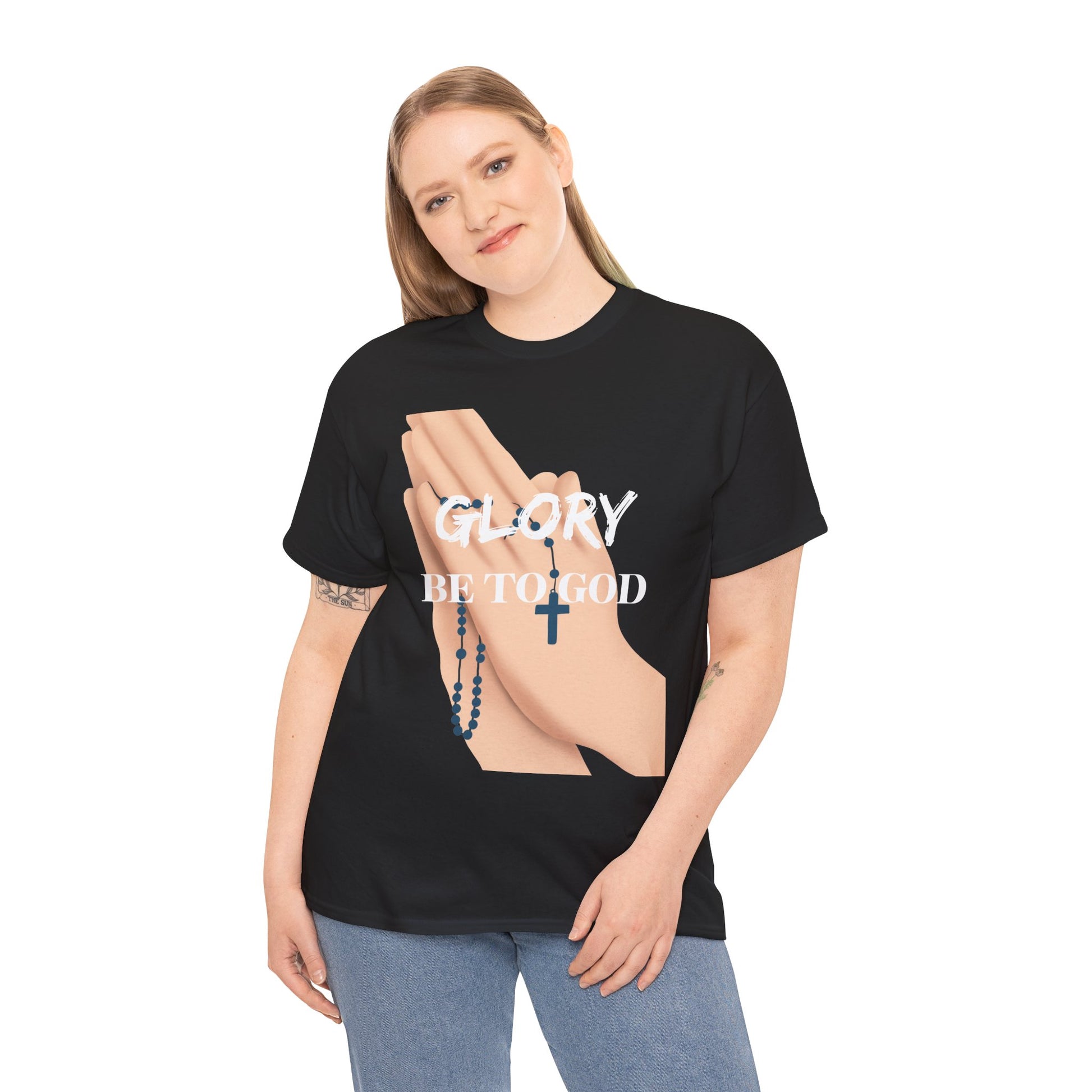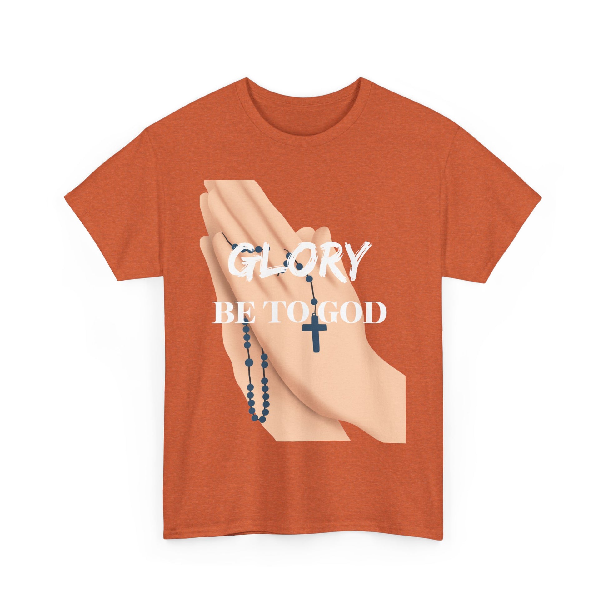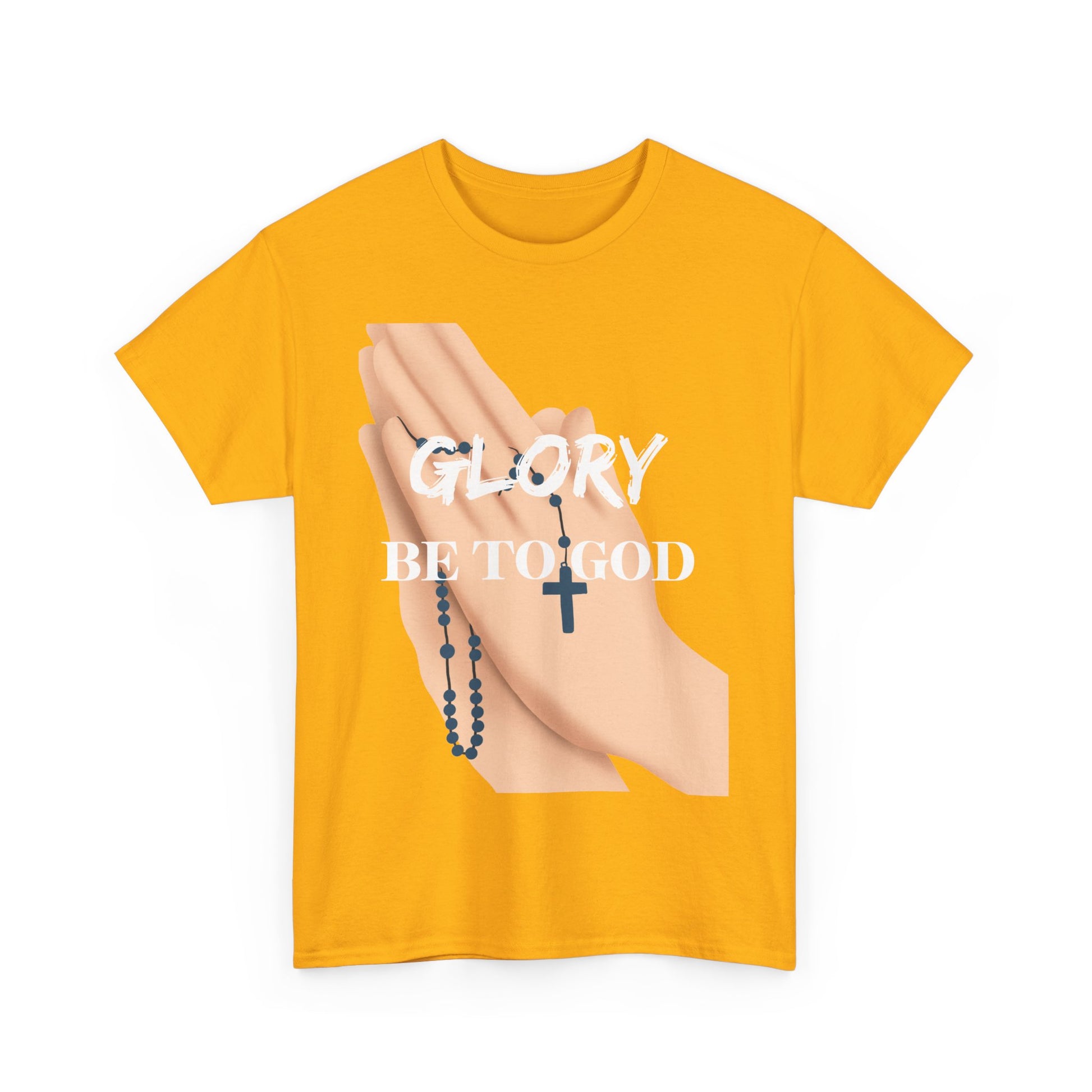 An Inspirational Faith Tee with the message 'Glory Be To God', this Unisex Heavy Cotton T-Shirt exudes positivity and spiritual vibes. Perfect for those who want to express their faith and feel connected to a higher power. Ideal for religious holidays, church gatherings, or everyday wear for believers.