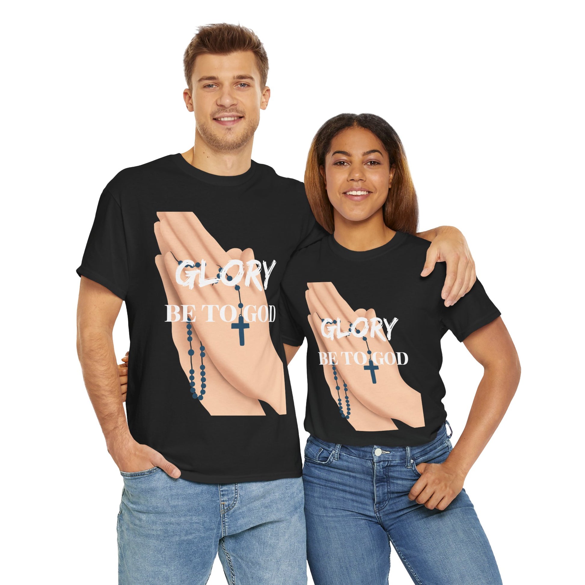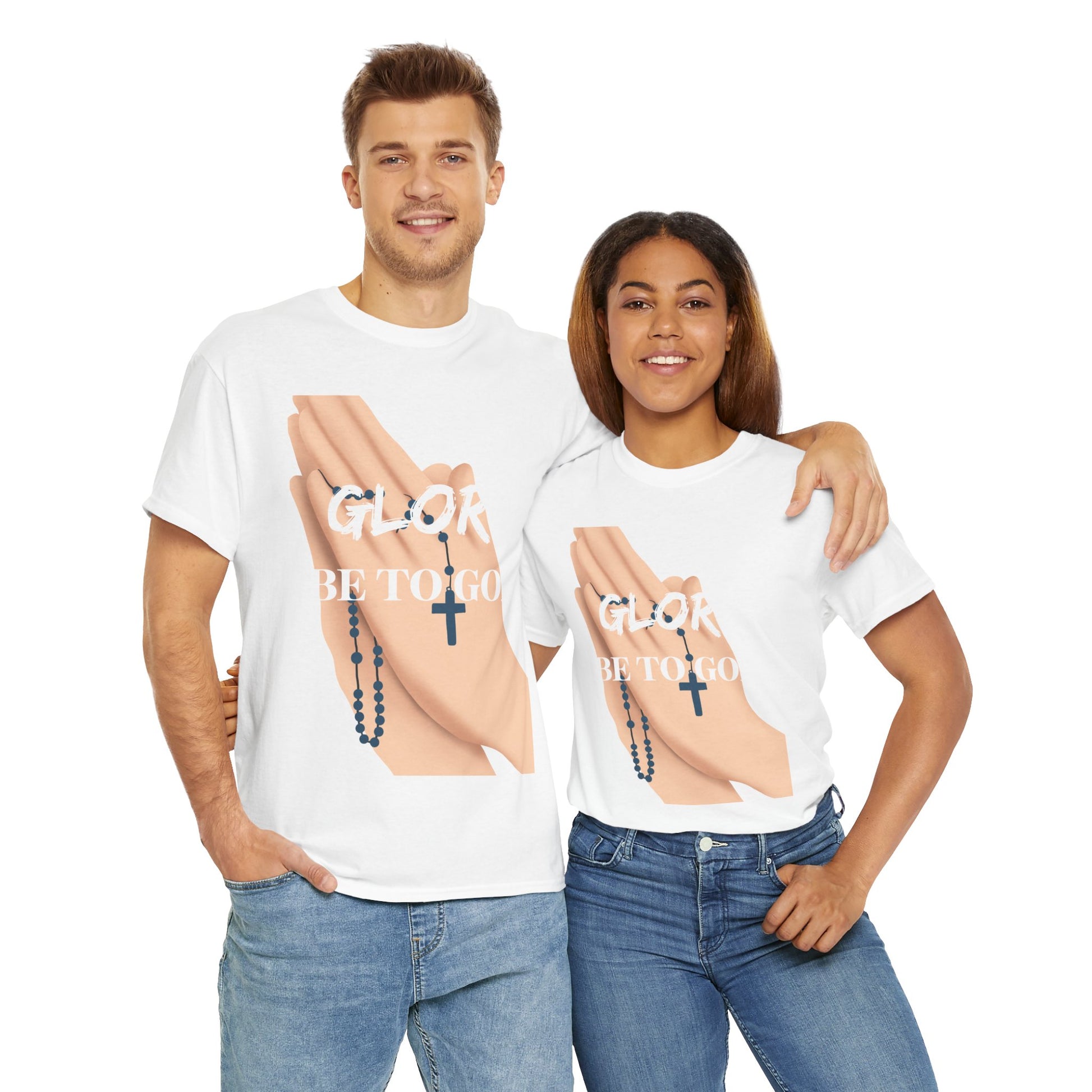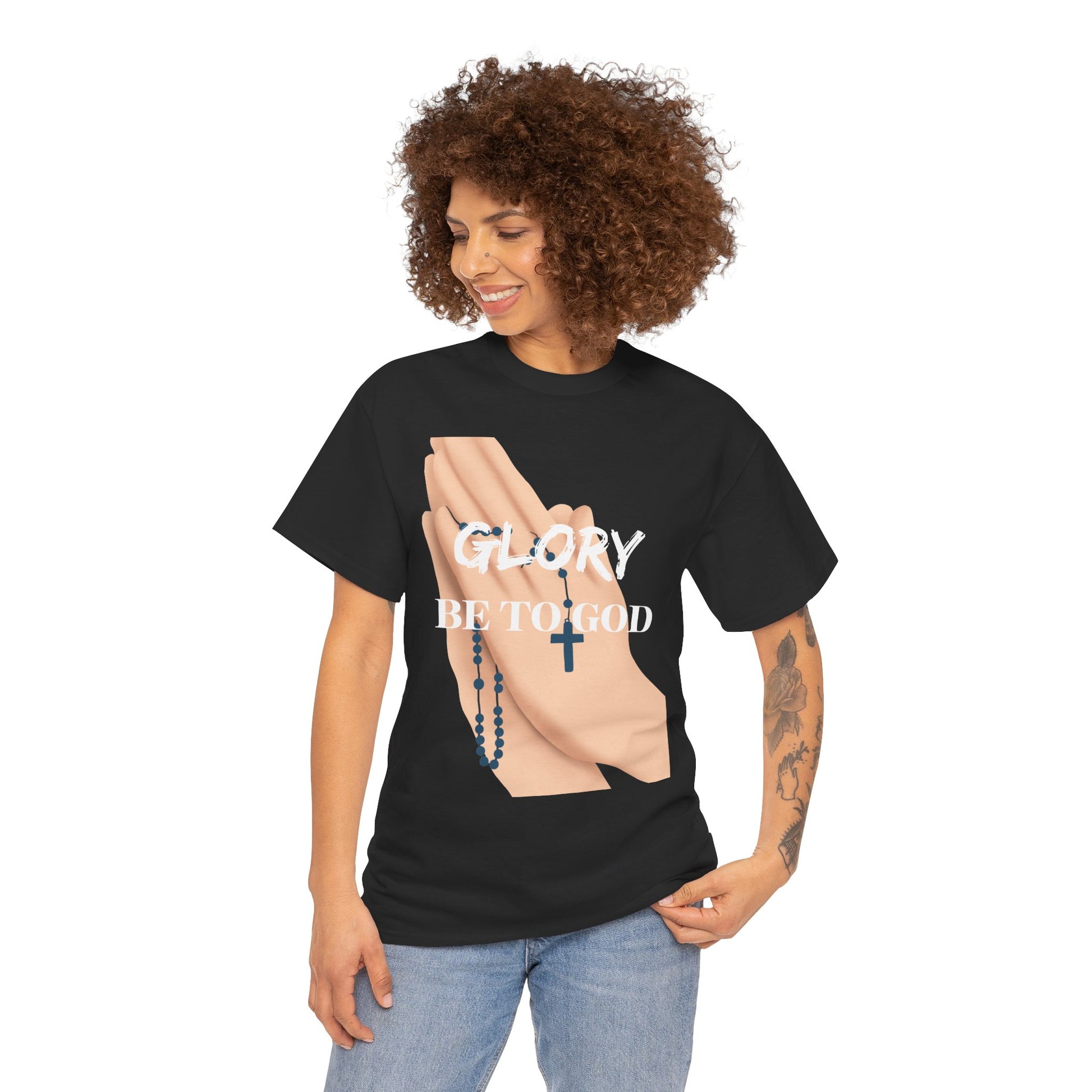 An Inspirational Faith Tee with the message 'Glory Be To God', this Unisex Heavy Cotton T-Shirt exudes positivity and spiritual vibes. Perfect for those who want to express their faith and feel connected to a higher power. Ideal for religious holidays, church gatherings, or everyday wear for believers.
