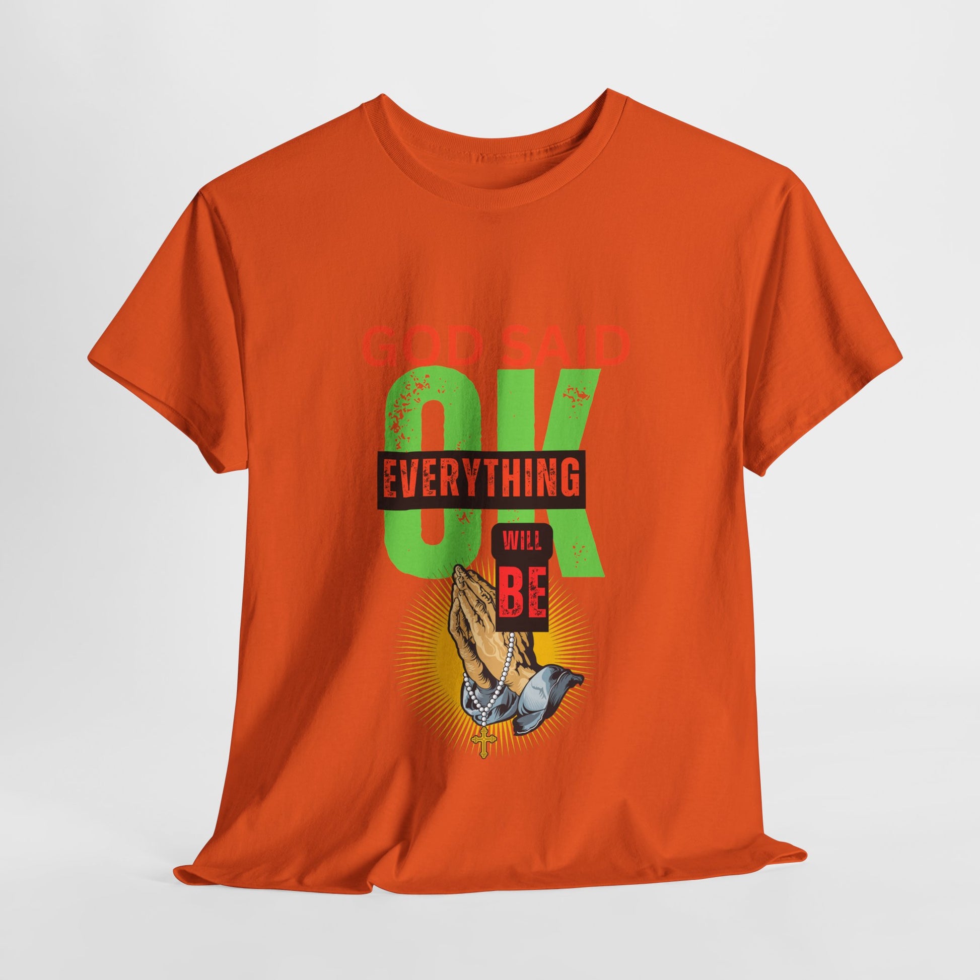This inspirational Unisex Heavy Cotton Tee with the 'God Said OK' design exudes positivity and faith. It is perfect for those who seek comfort and motivation in their daily wear. Ideal for believers, spiritual individuals, or anyone looking for a meaningful and uplifting piece of clothing. Relevant for religious holidays, spiritual gatherings, and casual everyday wear.
