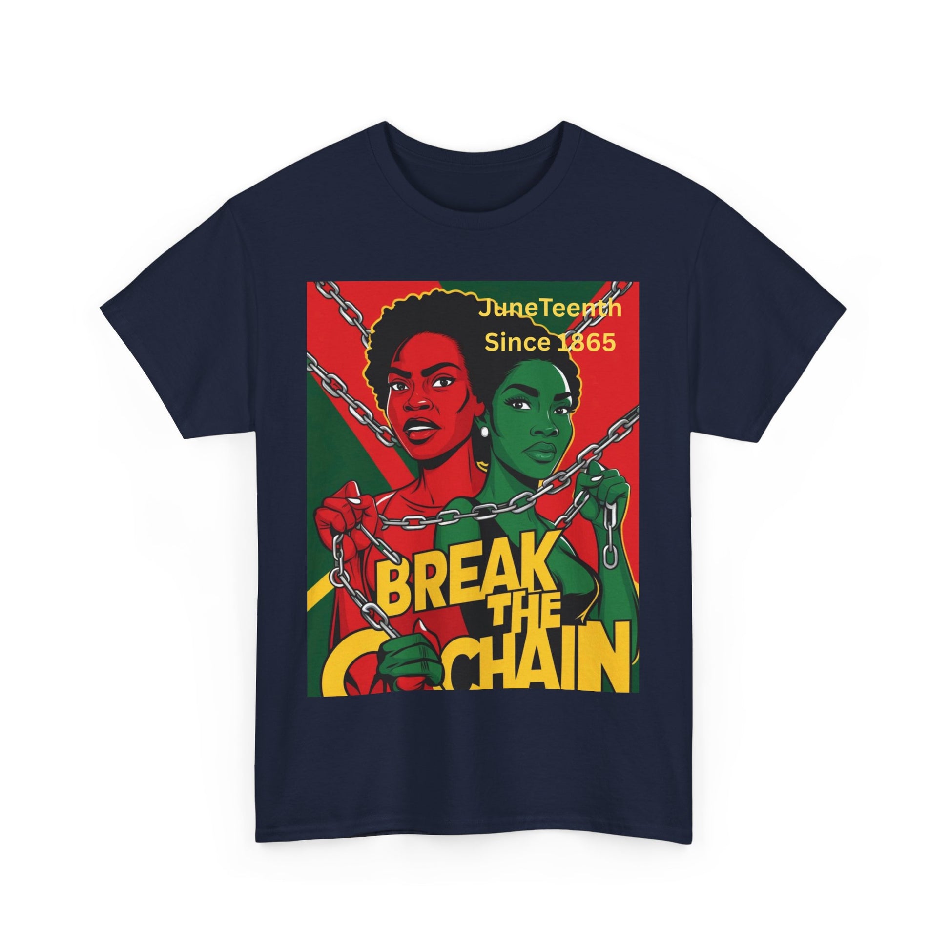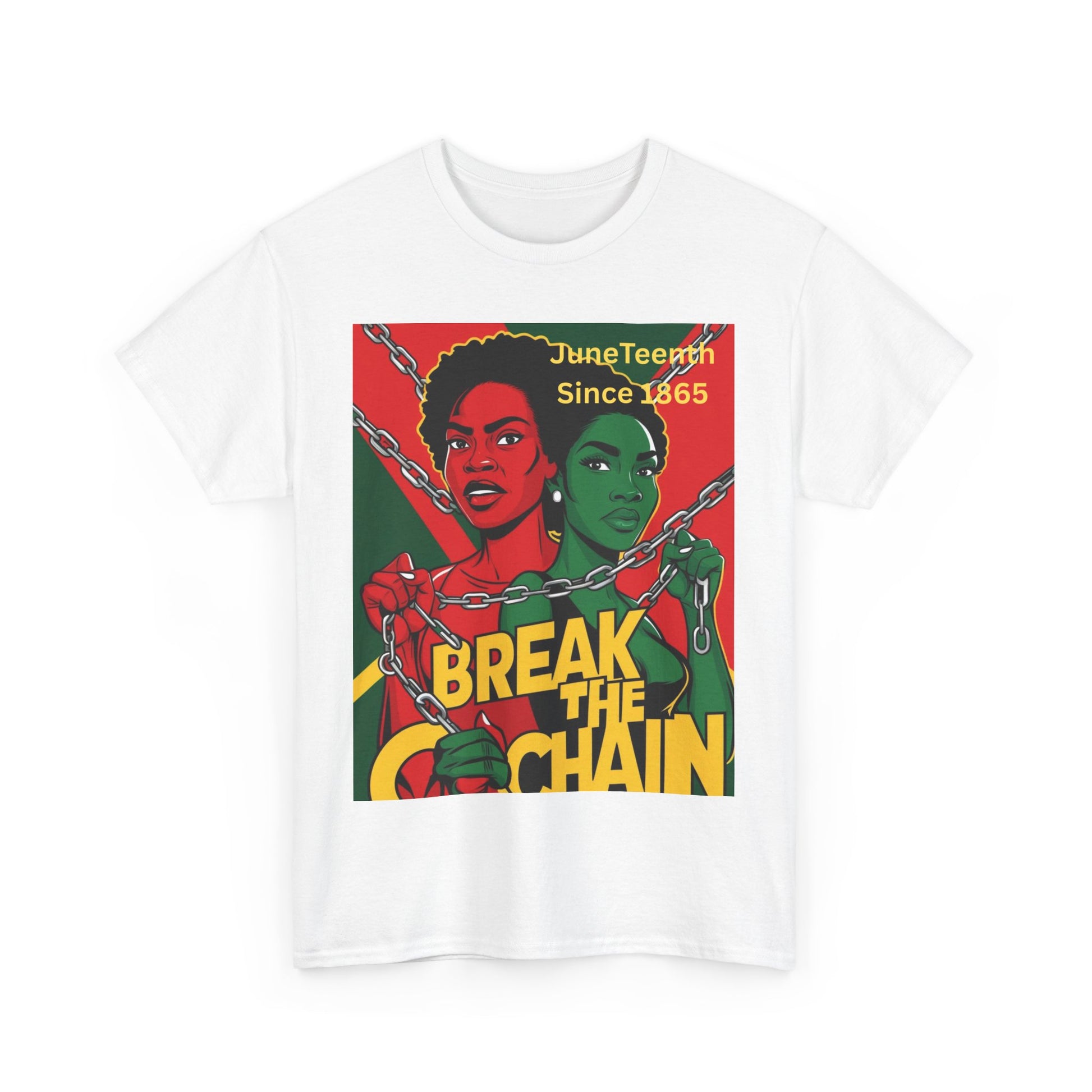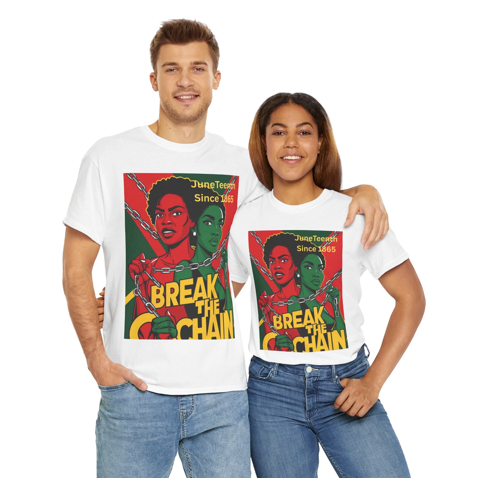 Celebrate Juneteenth in style with this Break the Chain Unisex Heavy Cotton Tee. Made from specially spun fibers, this tee is strong, smooth, and perfect for printing. The classic fit and crew neckline ensure a comfy, relaxed wear for adults at any occasion.