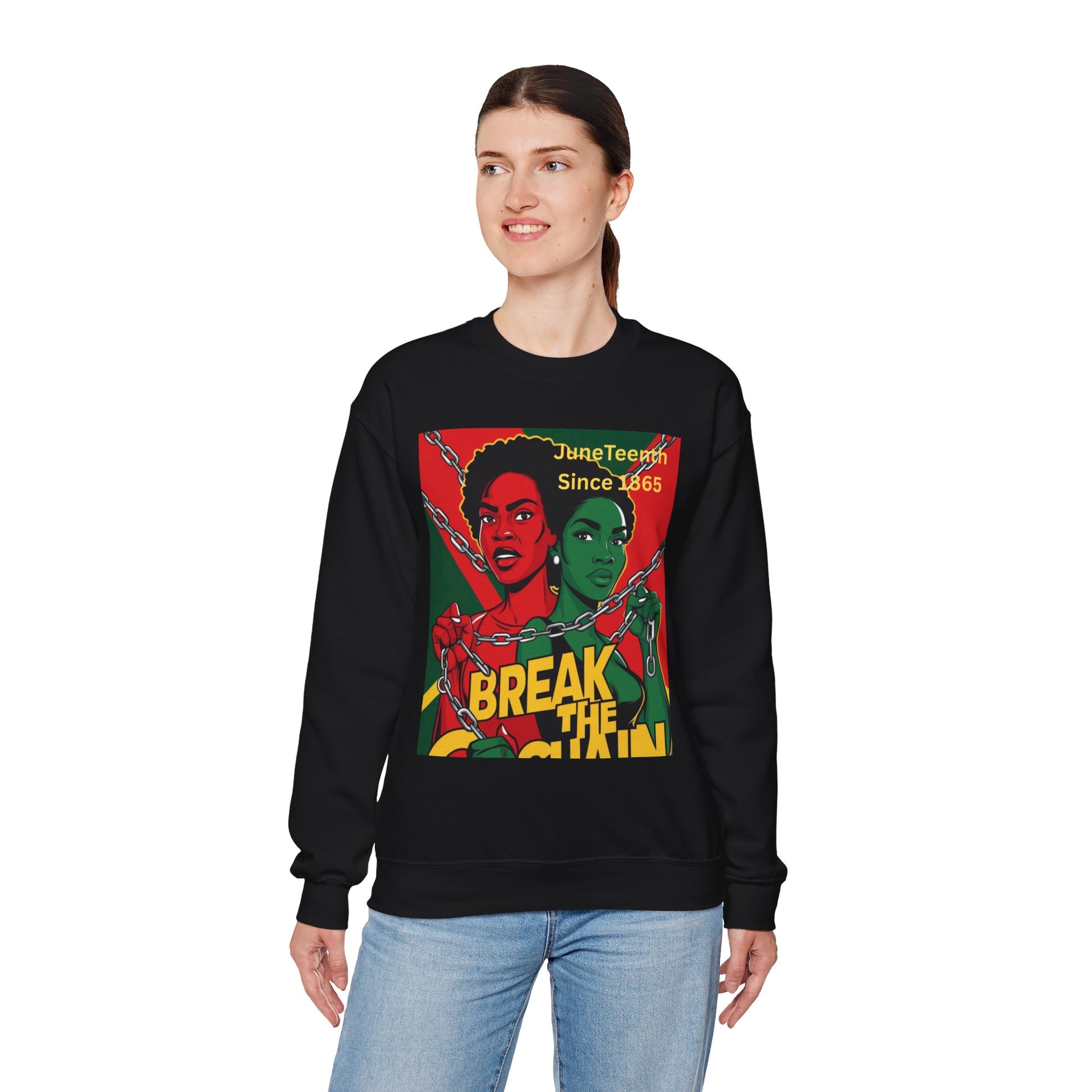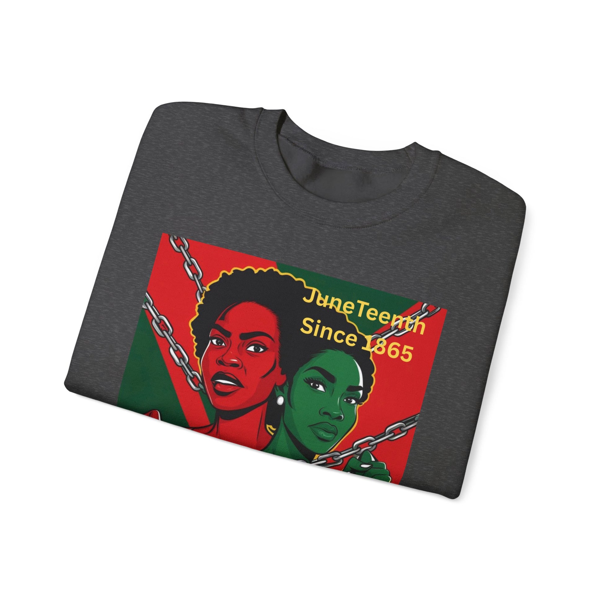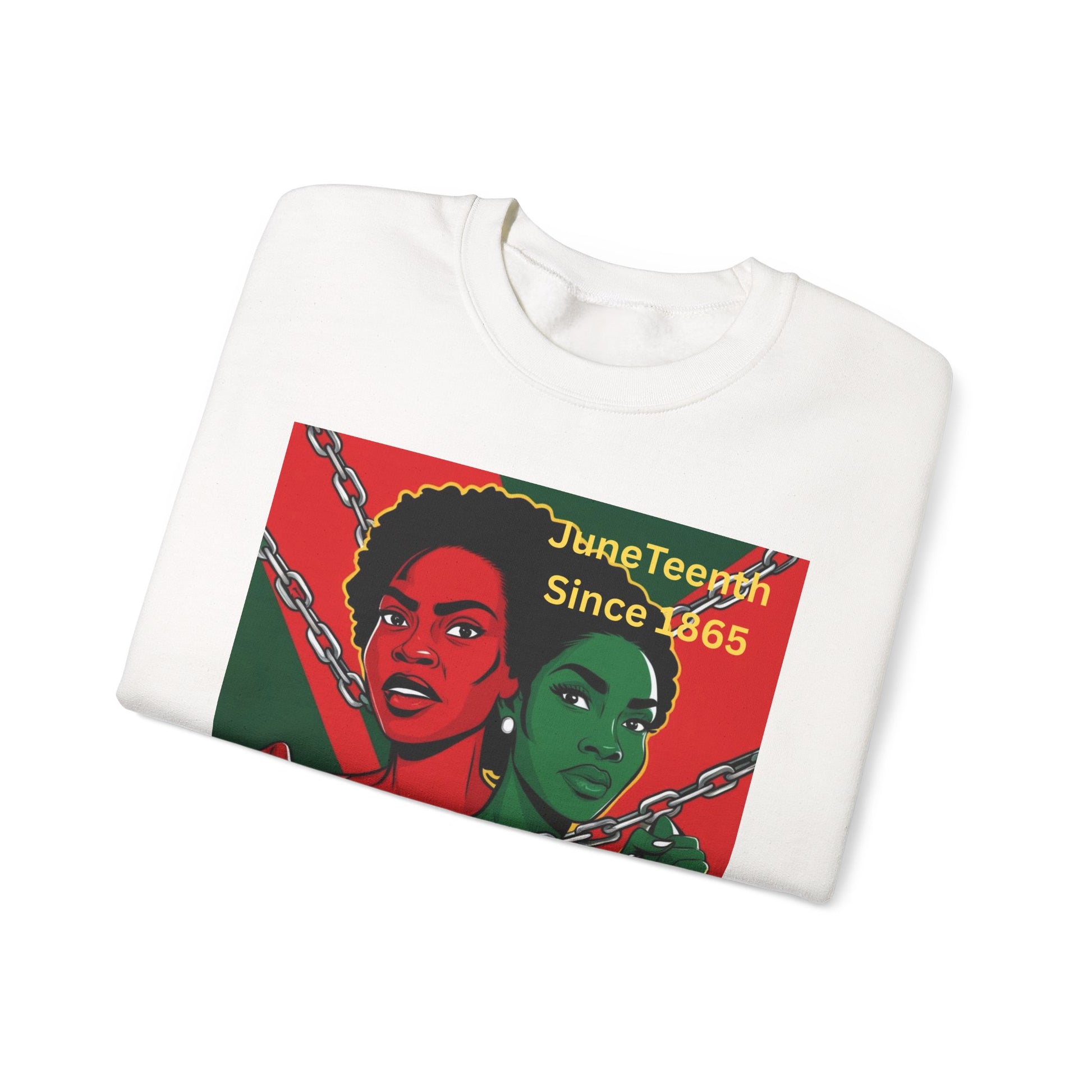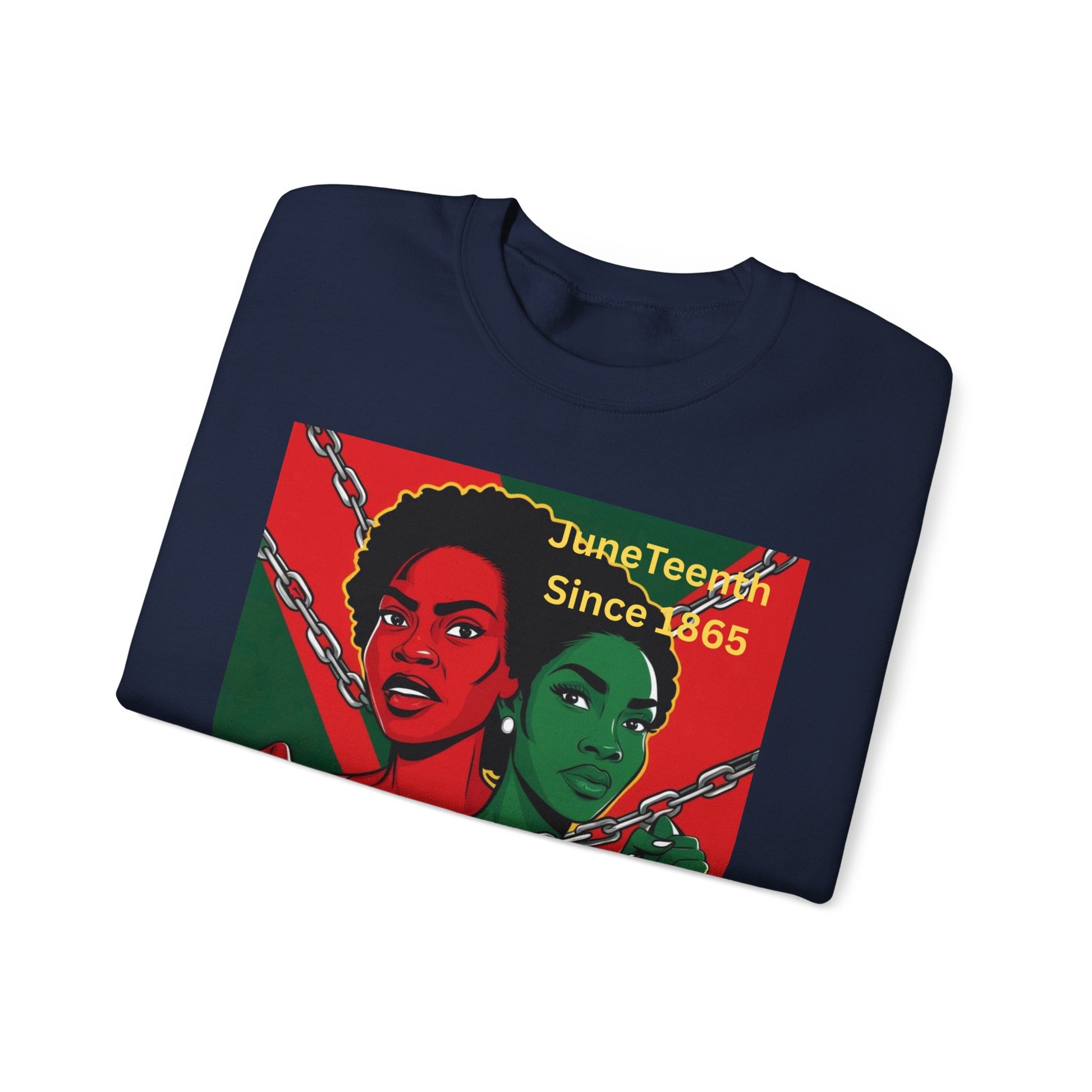 Celebrate June Teenth Freedom with this cozy and stylish Crewneck Sweatshirt. Perfect for those colder months, this sweatshirt is made with a medium-heavy fabric blend of 50% cotton and 50% polyester. The classic fit and crew neckline offer a comfortable wearing experience with top-tier durability. Ideal for adults looking for a cozy and meaningful piece of clothing to wear during June Teenth celebrations.