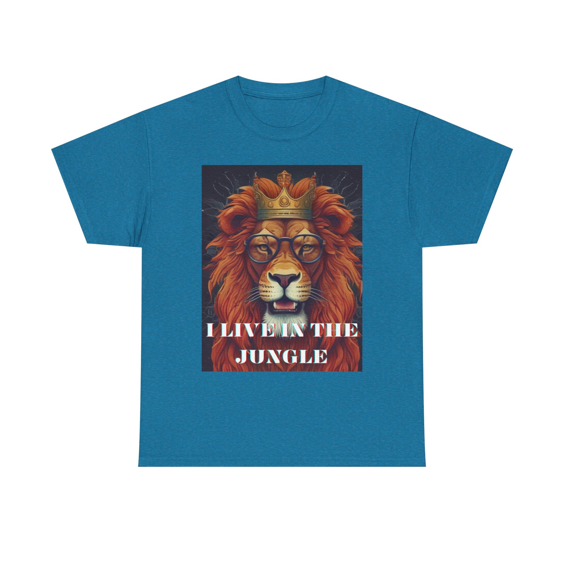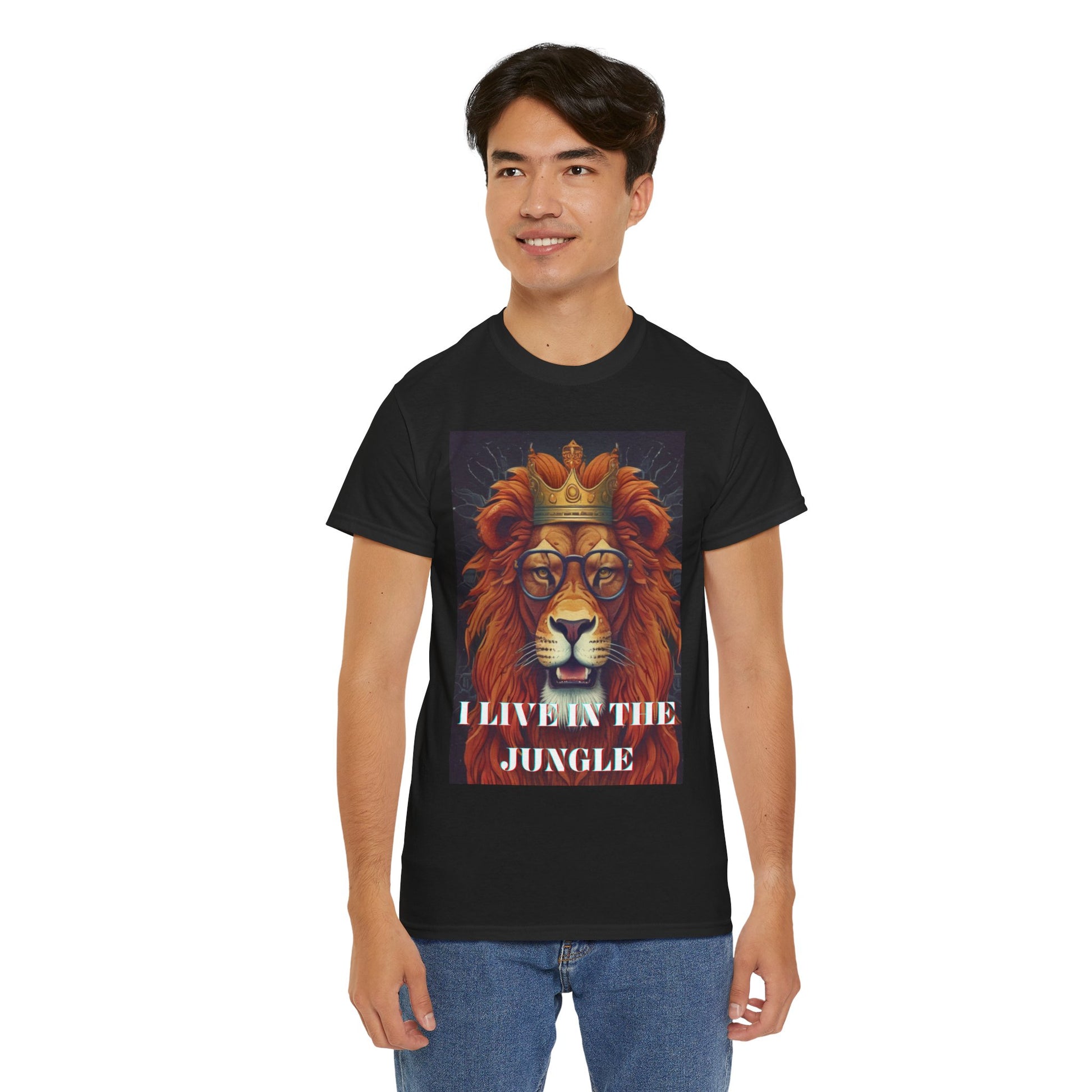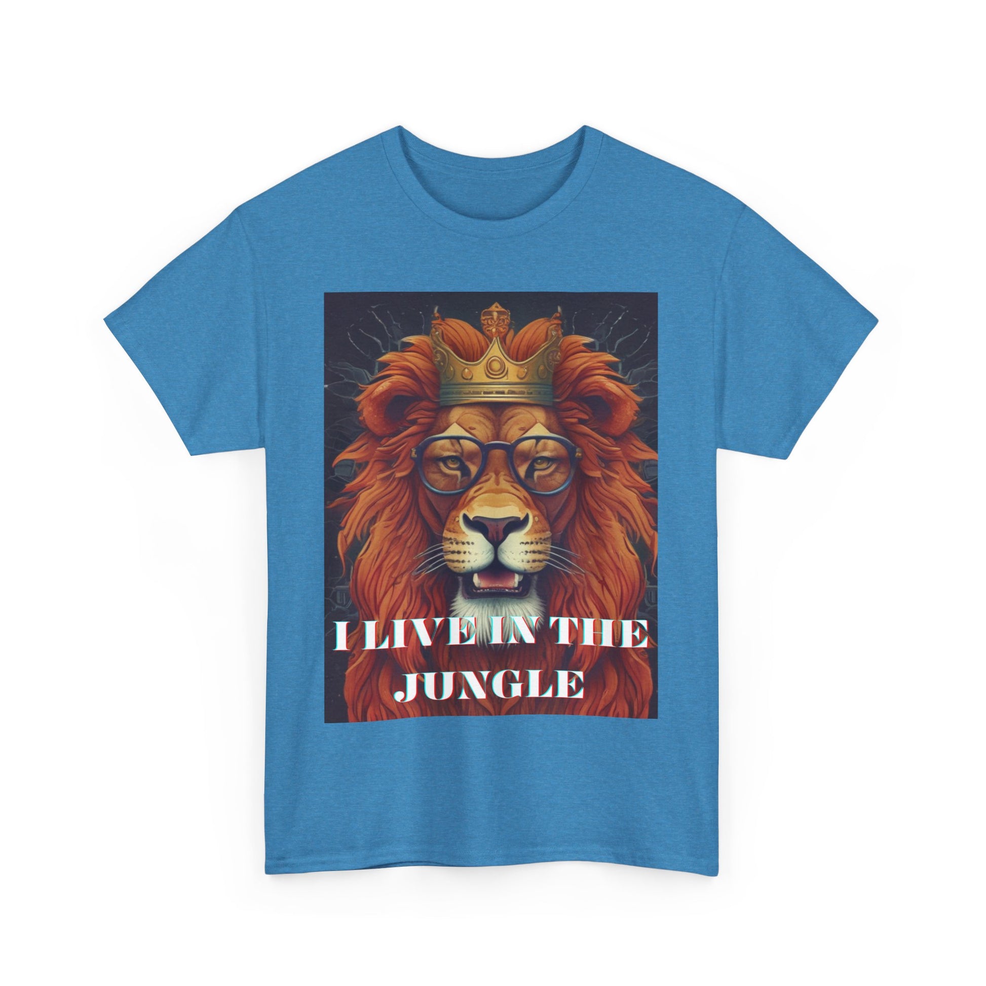 The 'I Live in the Jungle King Lion' Tee is a stylish and comfortable addition to any wardrobe. With its classic fit, ribbed knit collar, and tear-away label, this tee offers year-round comfort and sustainability. Perfect for adults looking for a unique and fun design to wear casually or semi-formally. Ideal for those who appreciate nature-inspired designs, this tee is perfect for wearing on casual outings, nature walks, or wildlife-themed events.