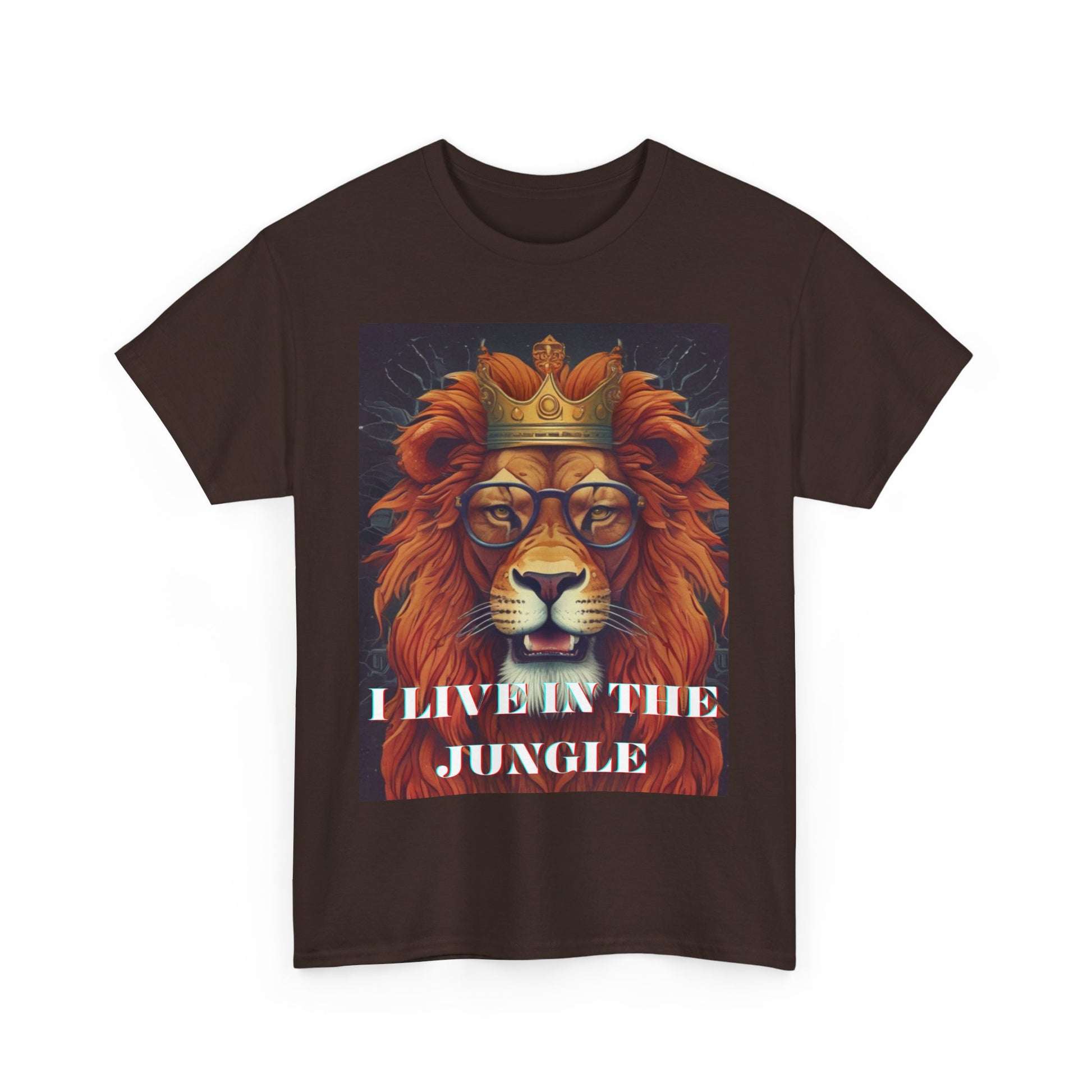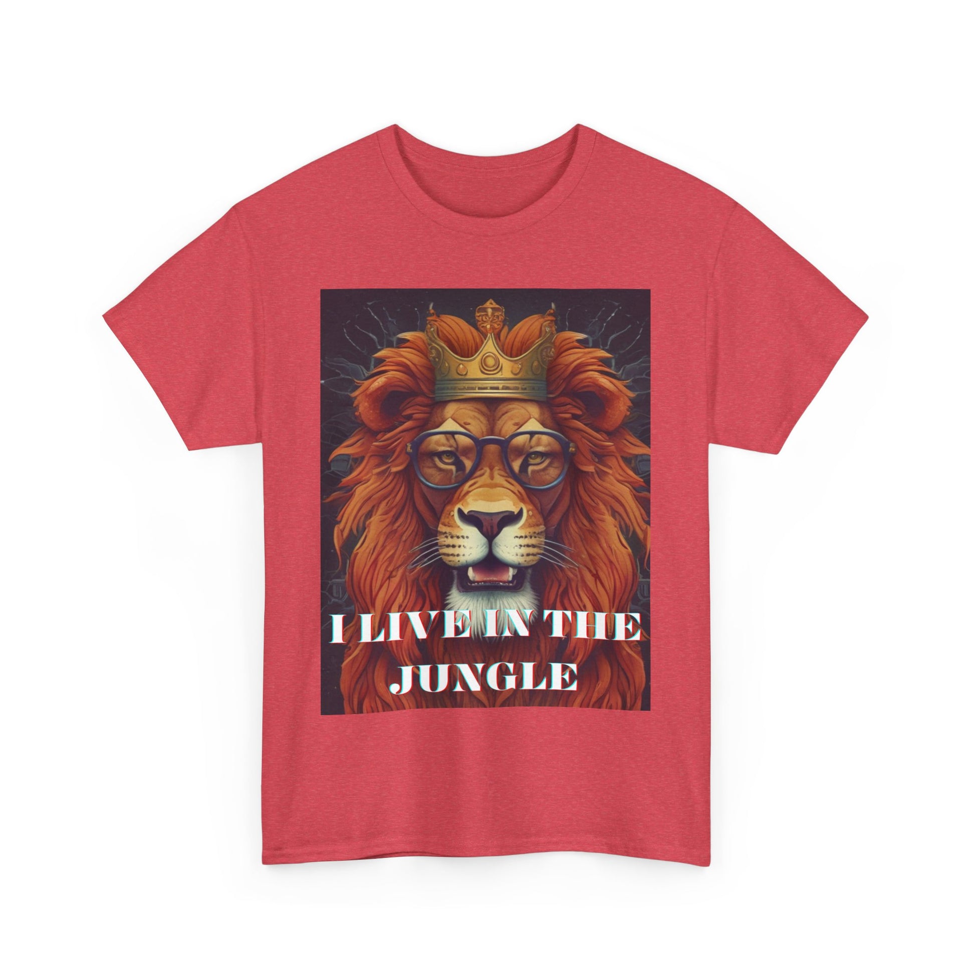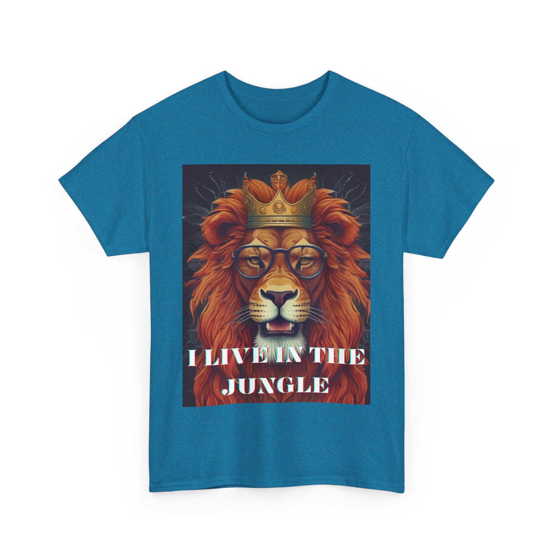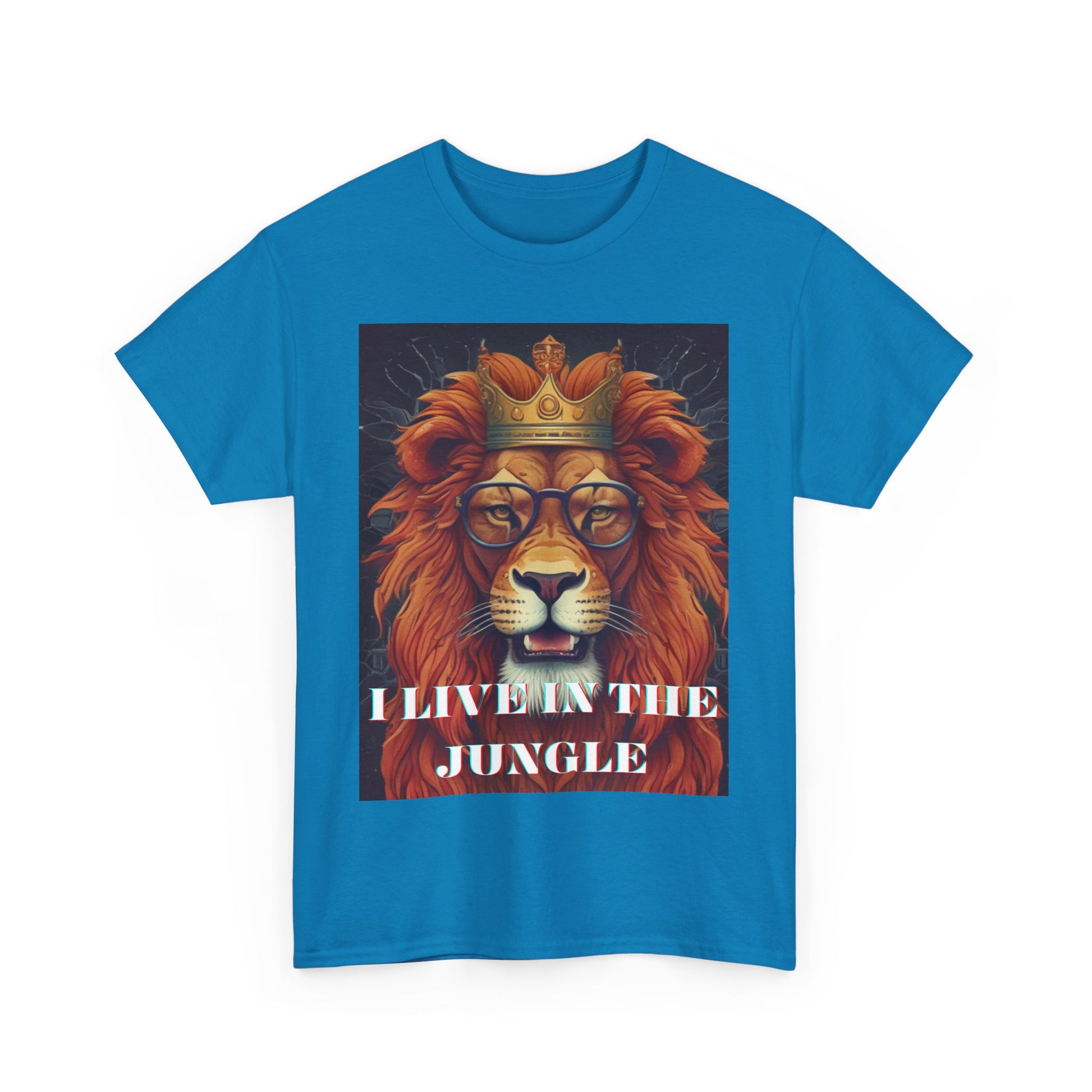 The 'I Live in the Jungle King Lion' Tee is a stylish and comfortable addition to any wardrobe. With its classic fit, ribbed knit collar, and tear-away label, this tee offers year-round comfort and sustainability. Perfect for adults looking for a unique and fun design to wear casually or semi-formally. Ideal for those who appreciate nature-inspired designs, this tee is perfect for wearing on casual outings, nature walks, or wildlife-themed events.